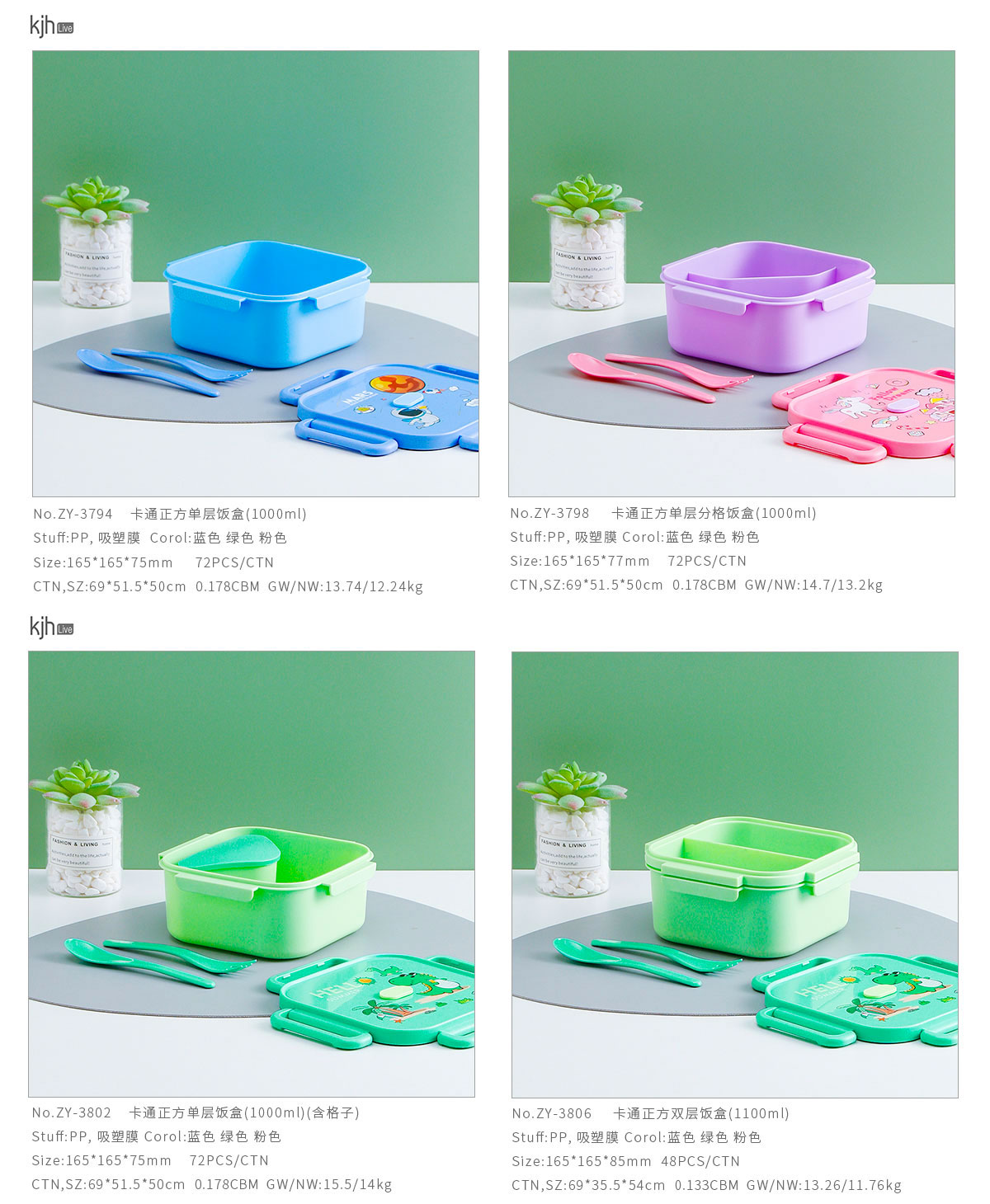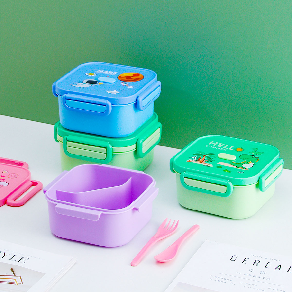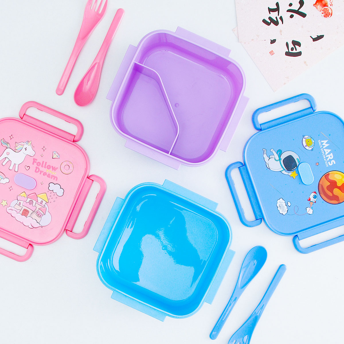 卡通正方單層/單層分格/單層含格子/雙層飯盒