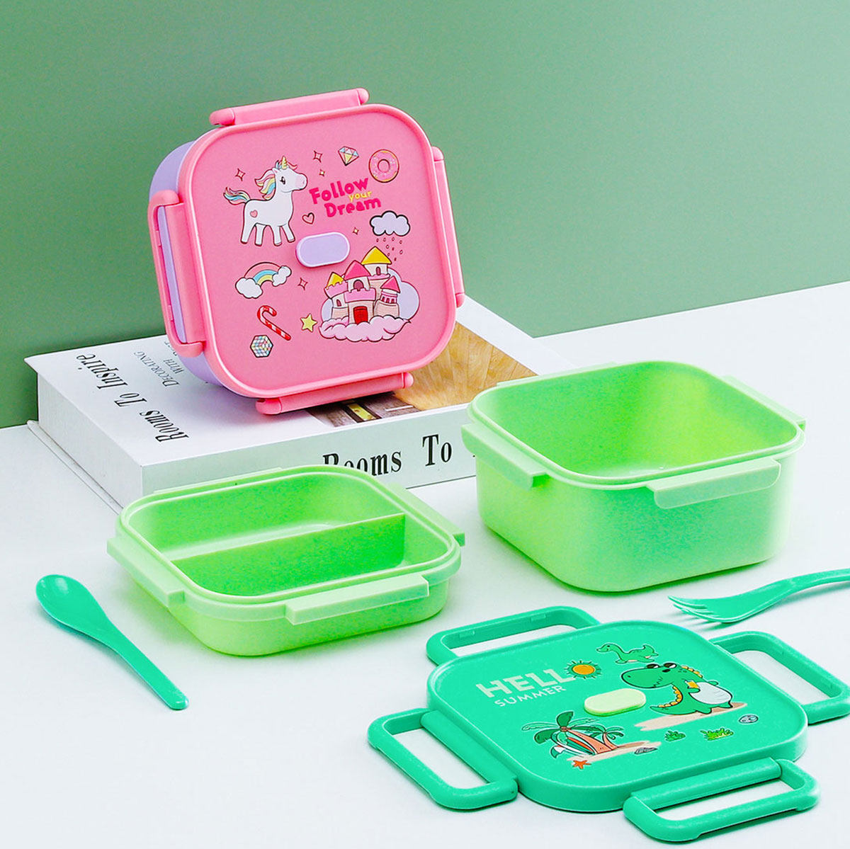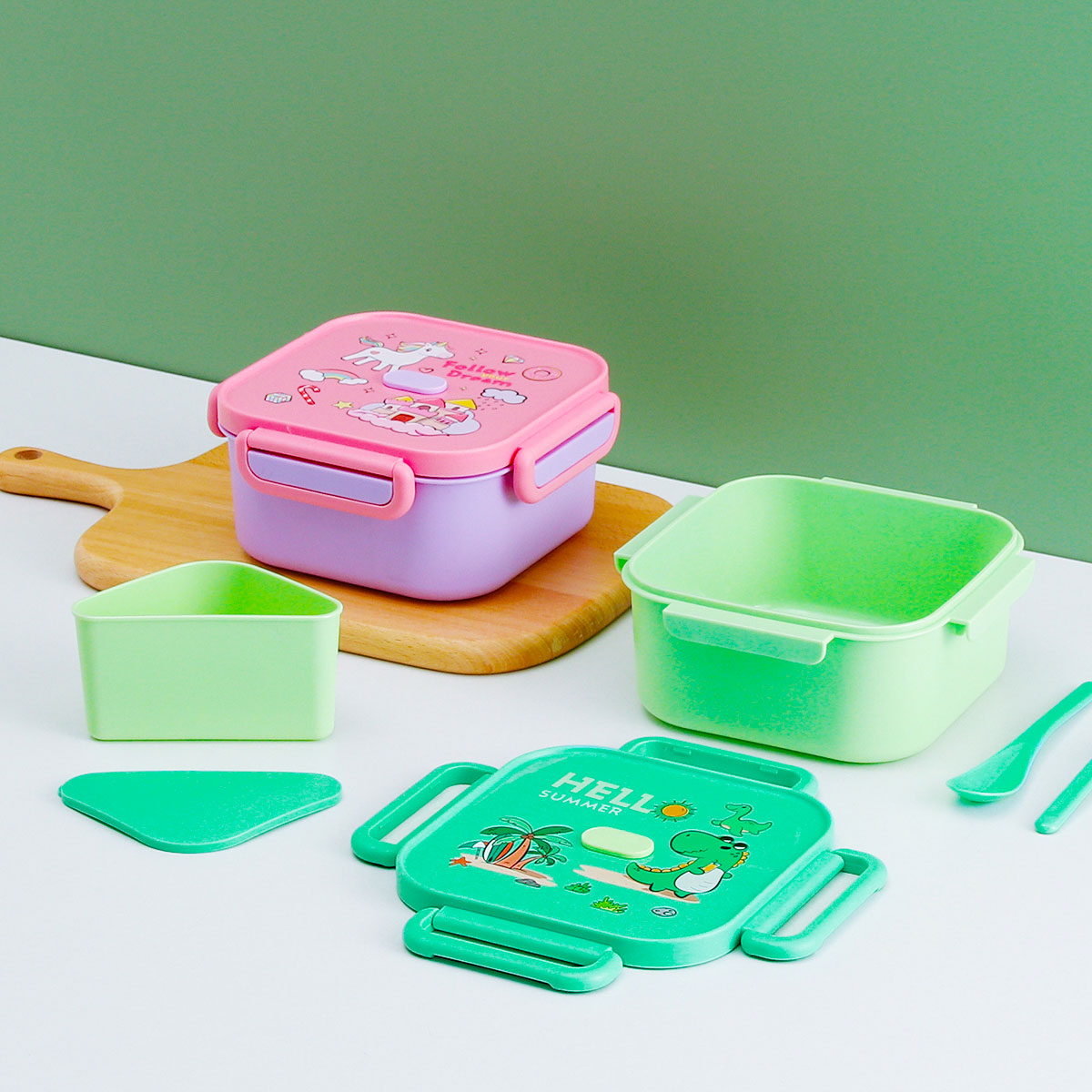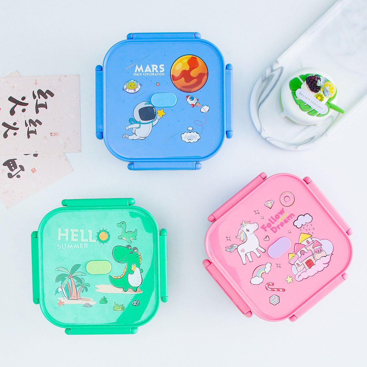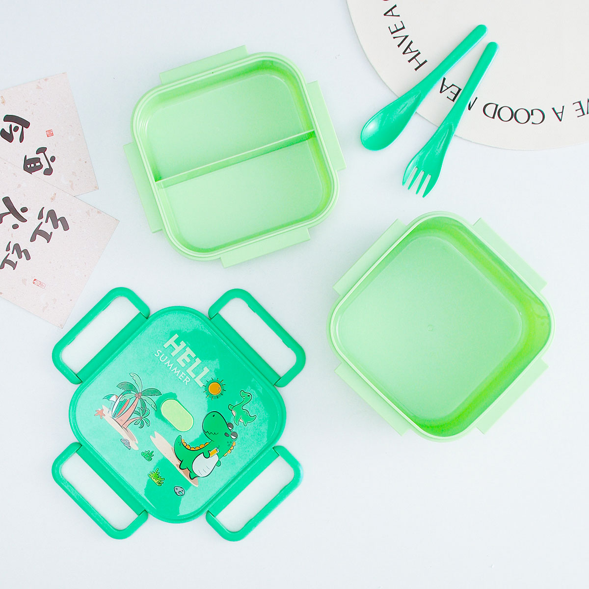 卡通正方單層/單層分格/單層含格子/雙層飯盒