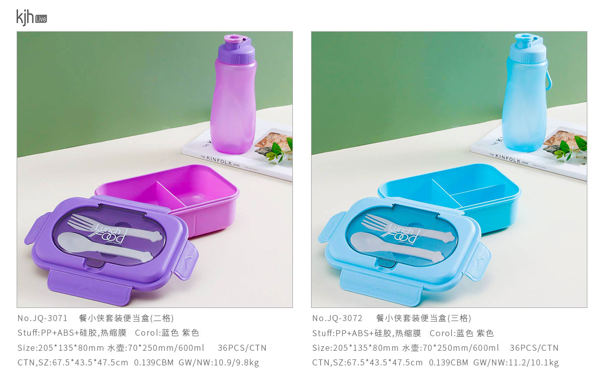 JQ-3072(三格):205*135*80mm 水壺:70*250mm/600ml