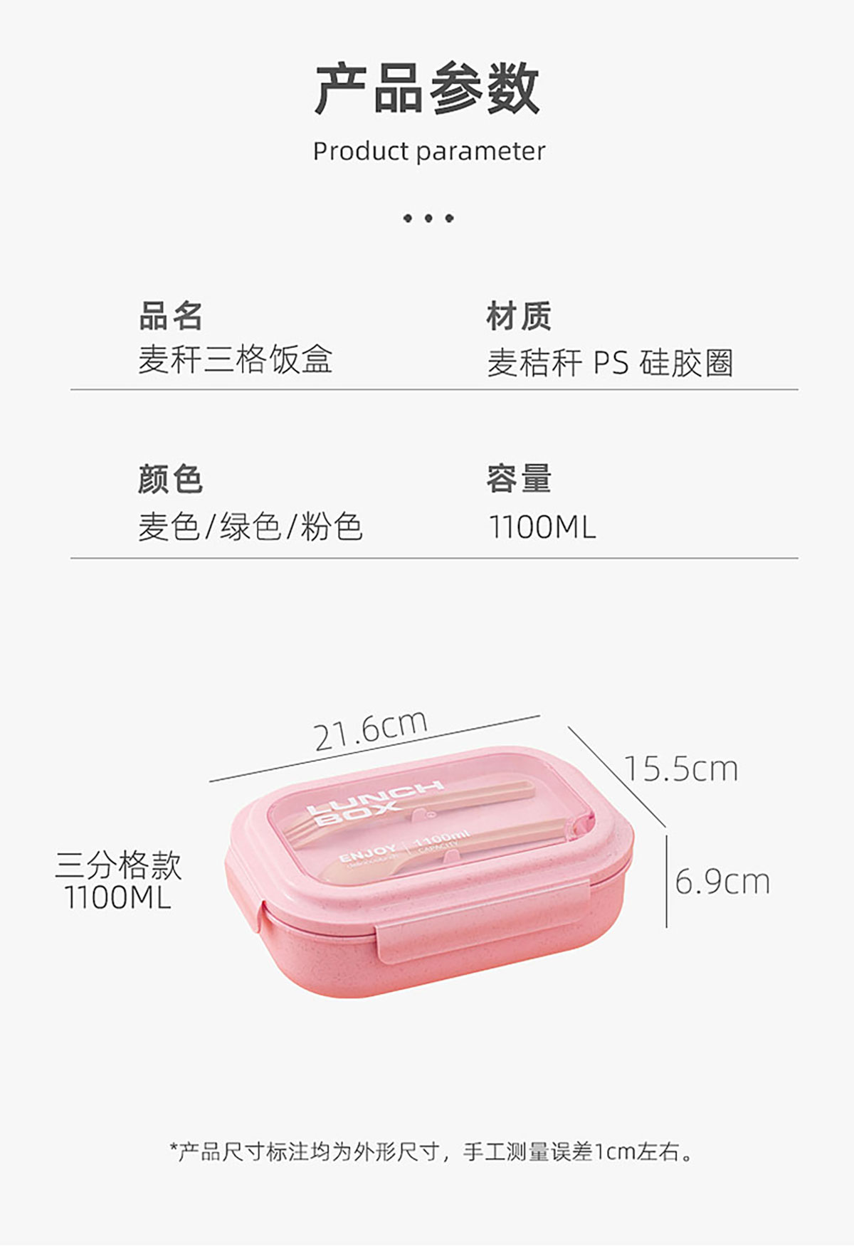 Size: 216*155*69mm/1100ml