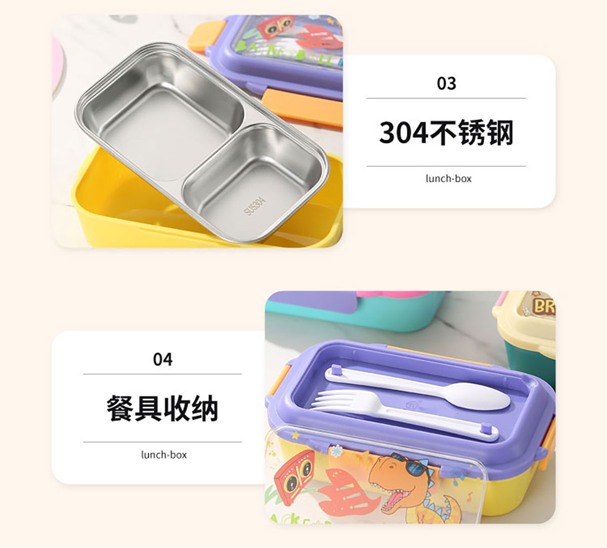 星樂卡通便當(dāng)盒PP款二格/不銹鋼款一格/二格