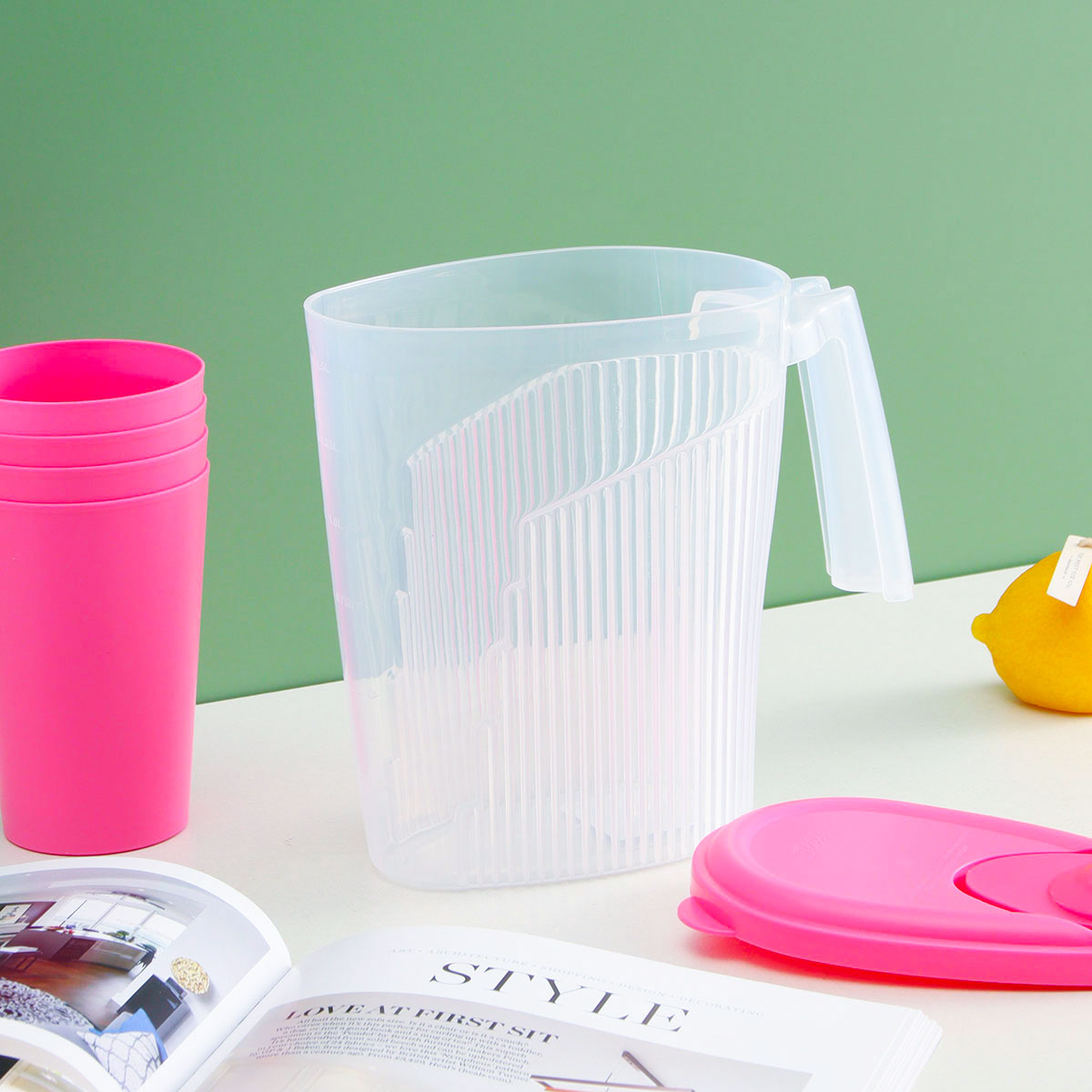 XL-R2082(小號(hào)):果汁壺:L200*W110*H185mm/1.6L水杯:Φ80*Φ58*110mm/350ml